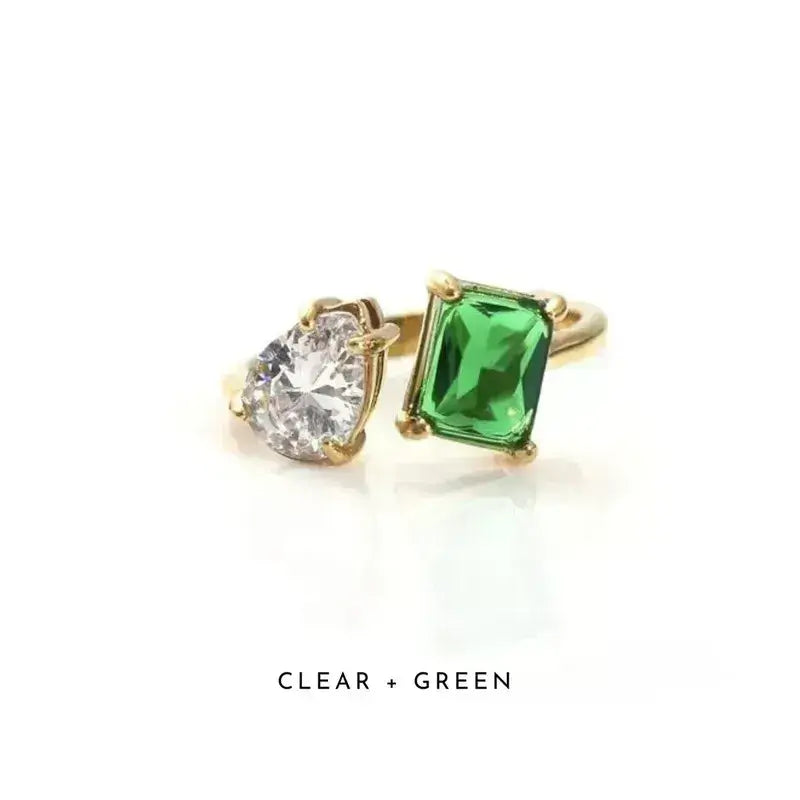 Ένα δαχτυλίδι από ανοξείδωτο ατσάλι με μια διάφανη και πράσινη ζιρκόνιον πέτρα, προσθέτοντας κομψότητα και φινέτσα στο στυλ σας.