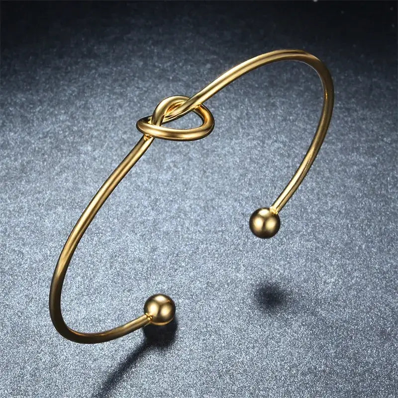 Αυτό το βραχιόλι με ρυθμιζόμενο άνοιγμα με μία διακριτική παρουσία κόμπου προσθέτει μία δόση ρομαντισμού και συμβολισμού. Είναι ιδανικό για όσους επιθυμούν να προσθέσουν ένα απλό αλλά εντυπωσιακό στοιχείο στην εμφάνιση τους.