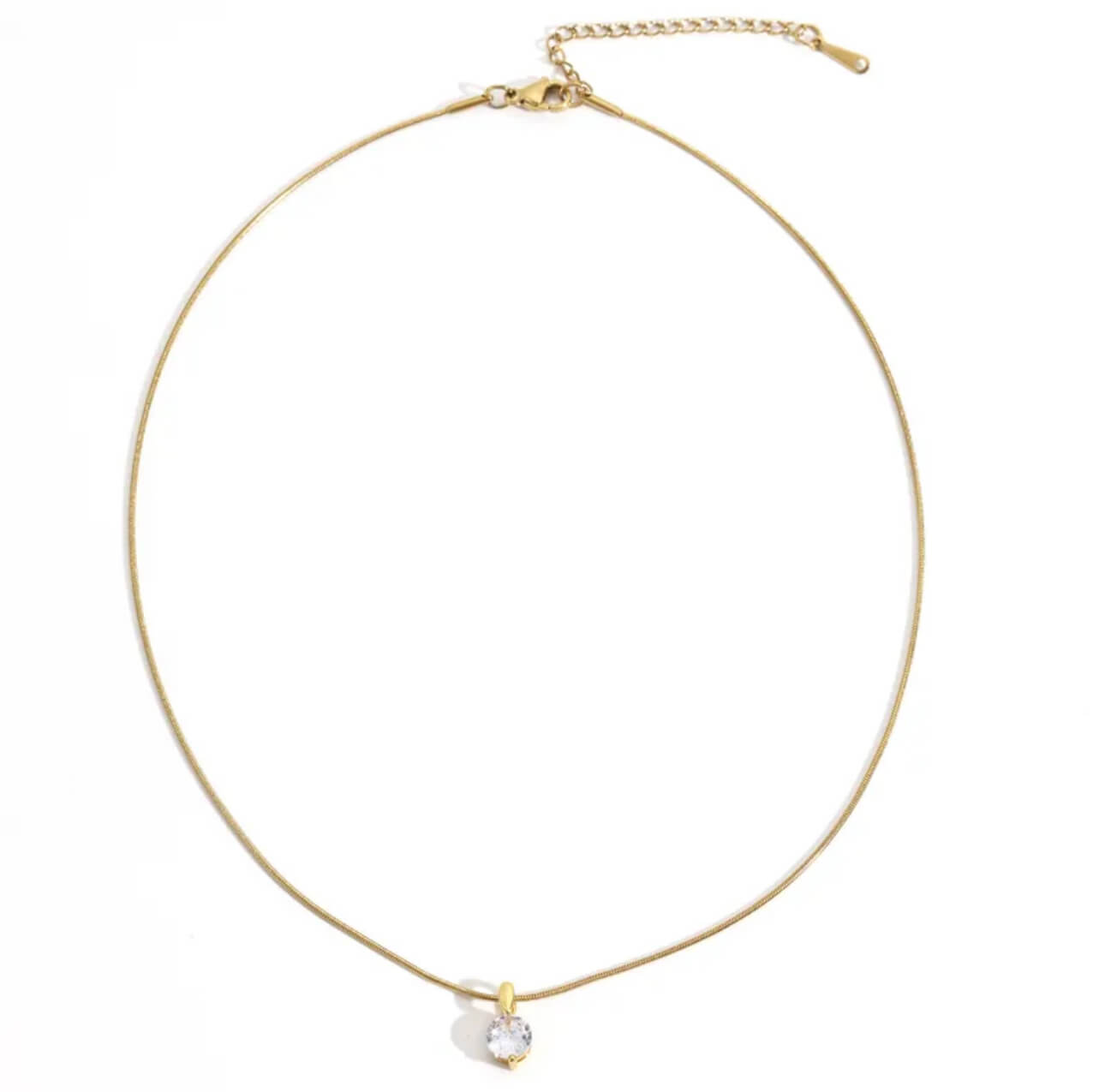 Προσθέστε μια αίσθηση πολυτέλειας με αυτό το εκπληκτικό κολιέ. Το κρεμαστό ζιργκόν δίνει μια λαμπερή και κομψή πινελιά, ενώ η χρυσή αλυσίδα εξασφαλίζει μια ζεστή και κλασική εμφάνιση. Ιδανικό για κάθε περίσταση, αυτό το κολιέ είναι μια εξαιρετική προσθήκη σε κάθε συλλογή κοσμημάτων.
