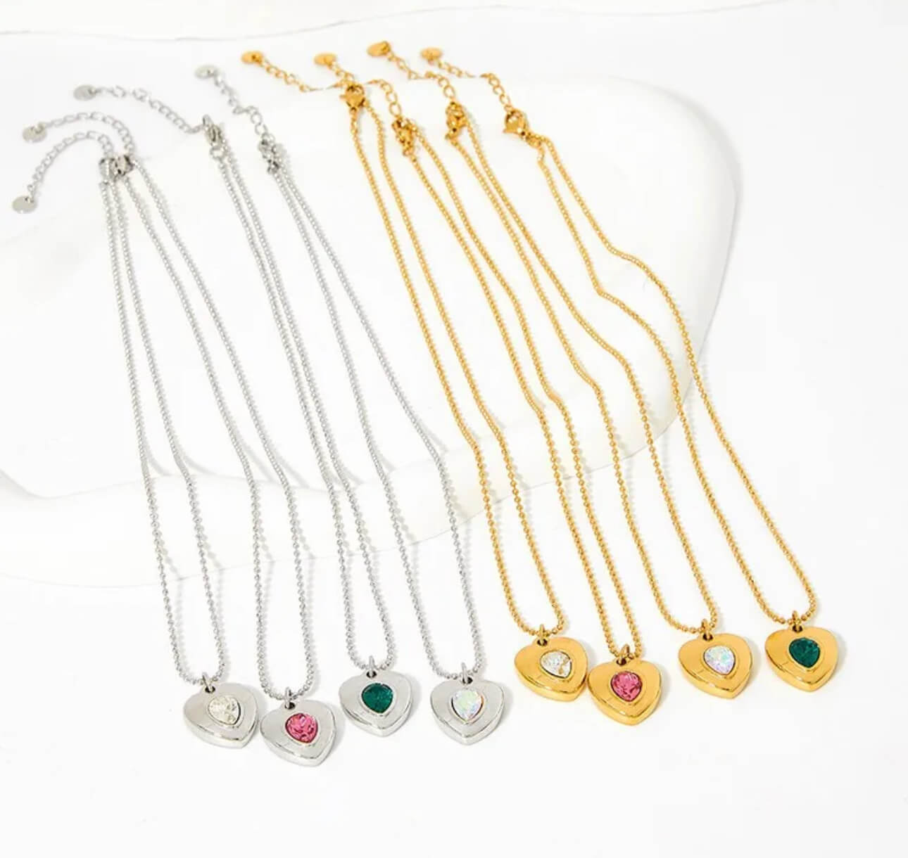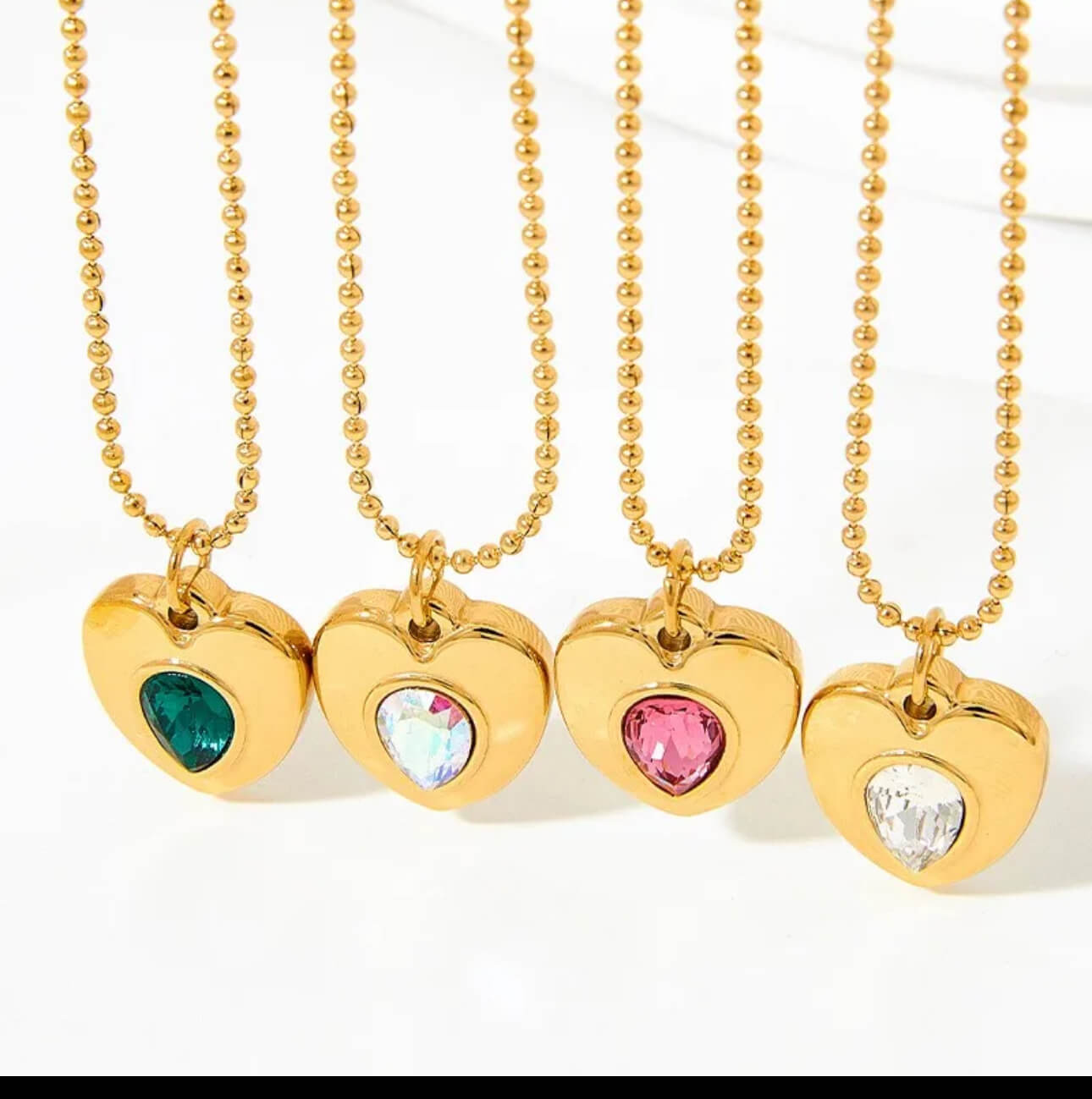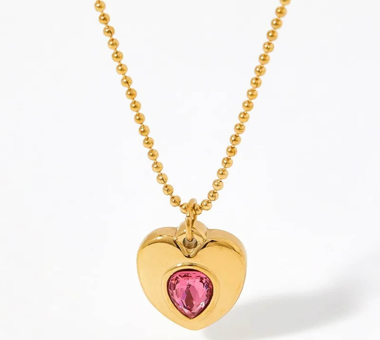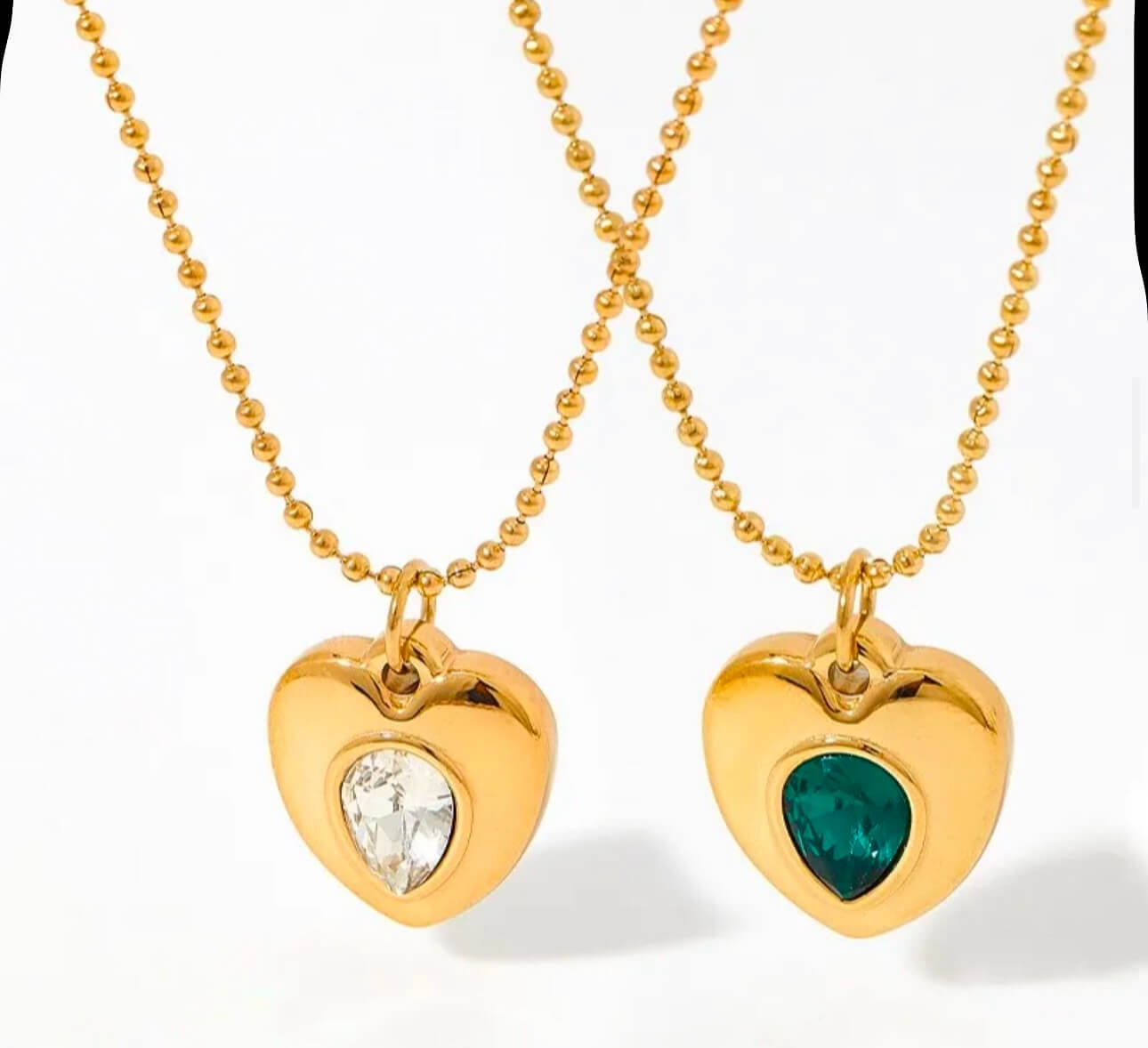 Κολιέ σε σχήμα καρδιά με κρυστάλλους στο κέντρο. Το κολιέ διαθέτει μια κομψή αλυσίδα από χρυσές ή ασημί σφαιρίτσες ιδανικό για ρομαντικά και κομψά looks.