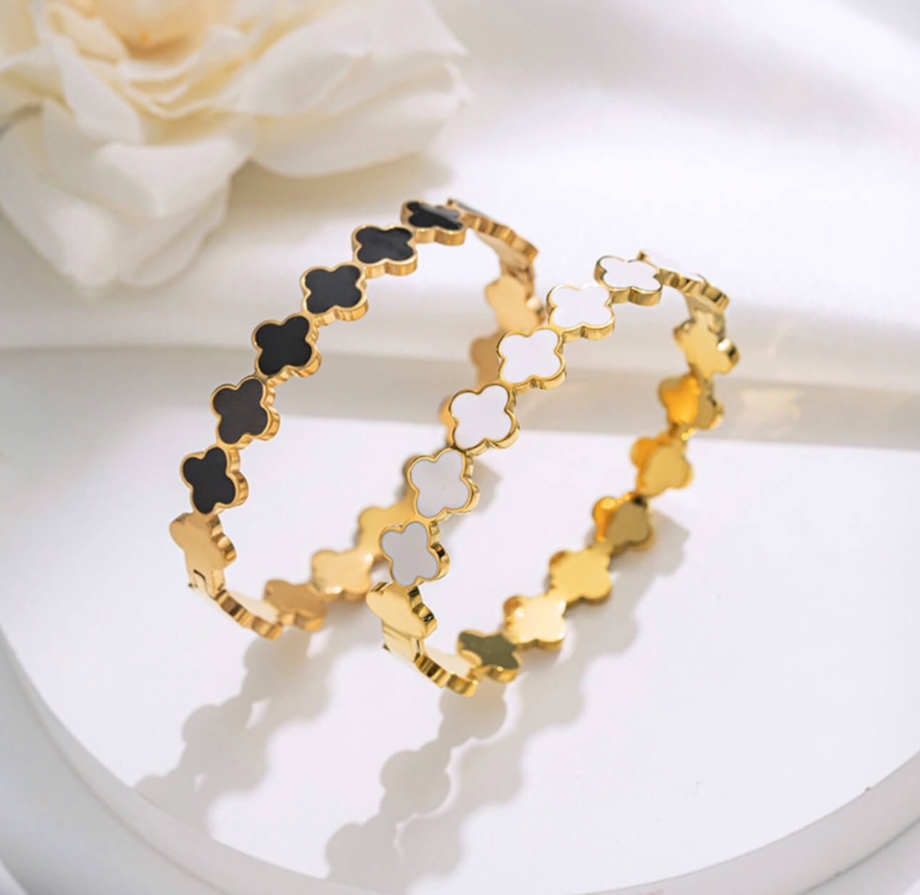 Αναδείξτε το στυλ σας με αυτά τα κομψά βραχιόλια από ανοξείδωτο ατσάλι σε χρυσαφί απόχρωση.Διακοσμημένα με μικρά μοντέρνα λουλούδια σε μαύρο και λευκό χρώμα, προσφέρουν μια διακριτική αλλά εκλεπτυσμένη αίσθηση που ταιριάζει σε κάθε εμφάνιση.Ιδανικά για καθημερινή χρήση ή για ιδιαίτερες περιστάσεις, αυτά τα βραχιόλια είναι σχεδιασμένα να προσφέρουν ανθεκτικότητα και στυλ.