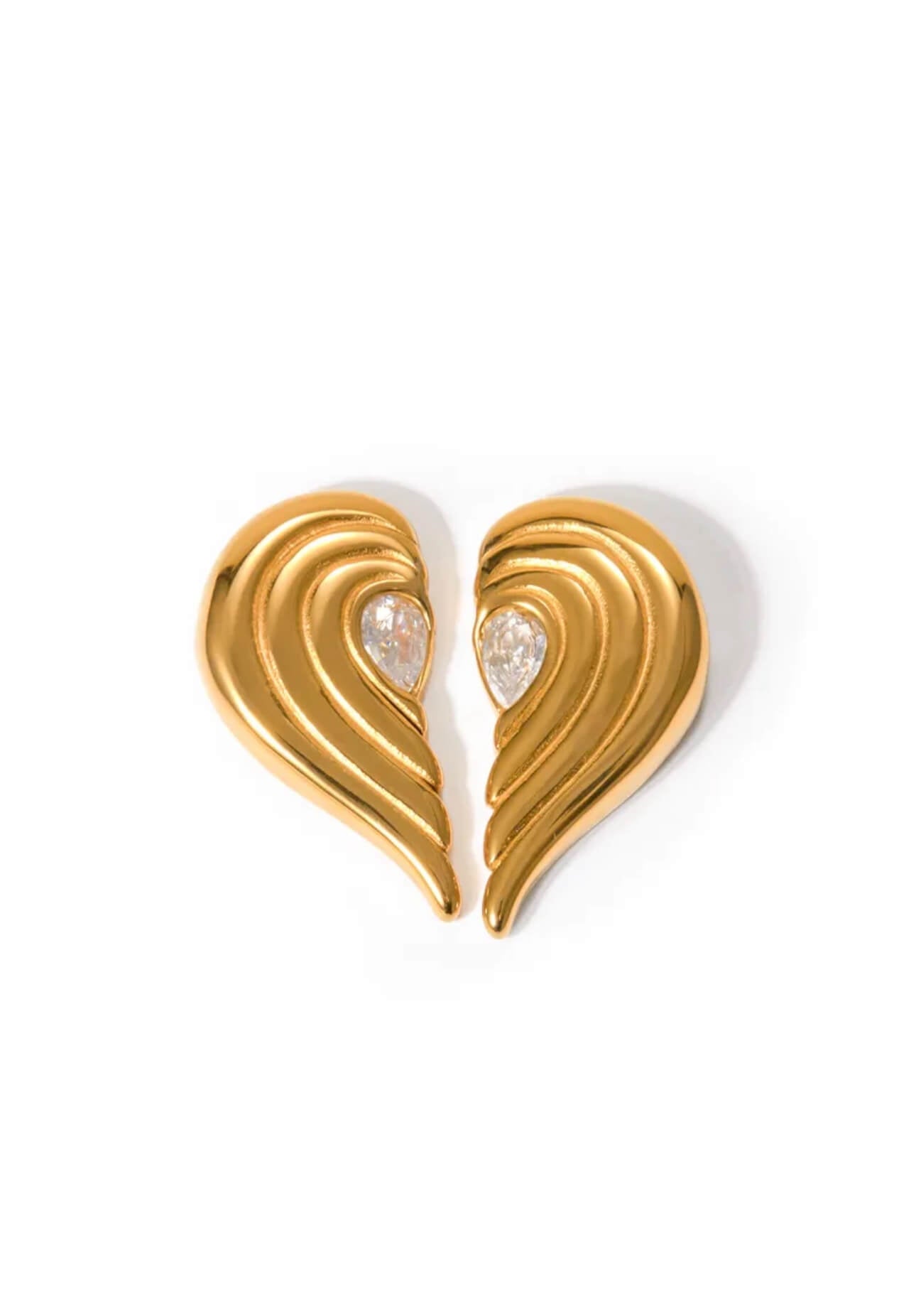 Ανακαλύψτε τα κομψά και μοναδικά σκουλαρίκια , ιδανικά για να προσθέσετε μια πινελιά πολυτέλειας στην εμφάνιση σας. Τα σκουλαρίκια αυτά διαθέτουν ένα ιδιαίτερο σχέδιο που θυμίζει φτερά, ενώ τοποθετημένα κεντρικά βρίσκονται δύο διαμαντόμορφες λεπτομέρειες που προσδίδουν λάμψη και μοναδικότητα.