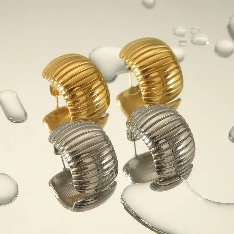 Αναδείξτε την κομψότητα και το στυλ σας με αυτά τα εντυπωσιακά σκουλαρίκια με ανάγλυφο σχέδιο, διαθέσιμα σε ασημί και χρυσό φινίρισμα. Το μοναδικό ραβδωτό σχέδιο τους προσθέτει μια μοντέρνα πινελιά καθιστώντας τα ιδανικά για κάθε εμφάνιση.